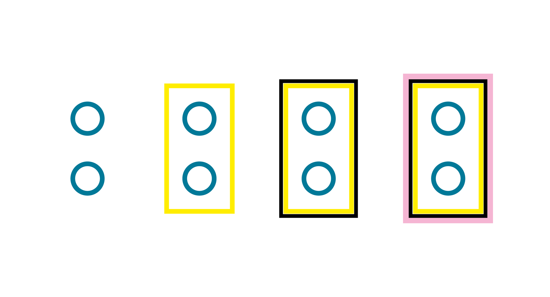 The point I am trying to make with this diagram is that there are slots—nodes, bricks, levels, stages—that can be filled in differently, and this conceptual structure is evoked visually rather than through verbal language. Admittedly words are used in the key, but the logic of the visual part of the diagram uses containment. Here ‘stages’ are designated with the outermost outline, nested inside that outline is the black levels outline, then the yellow brick outline, then the innermost circular nodes. It uses the same logic as the Russian dolls toy we discussed earlier. Furthermore, two of the slots in the key, the ‘stages’ and ‘nodes’ slots, have their own internal nested structure so that each slot has a more granular level with further options in terms of the colours that are used to render them.