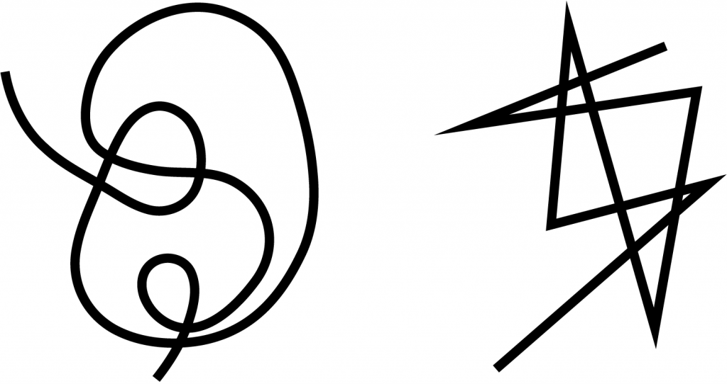 Some of these difficulties are foregrounded by reflecting on the images below. A juxtaposition of images such as these may well be familiar, whether linked to the sounds takete-maluma (Köhler, 1929) or bouba-kiki (Karthikeyan, Rammairone, Ramachandra, 2016). When Köhler first presented similar word/image pairs to participants, there was nothing that could be pointed to in the world (neither sound nor image) that these pairs were conventionally associated with. They were newly imagined and created for the experiment. Yet nonetheless most respondents unproblematically associate one of these images with one or other of these sounds.